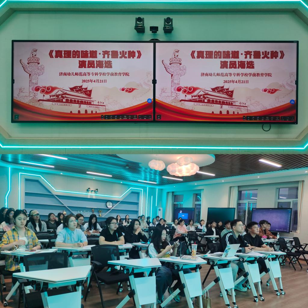 4月21日,学前教育学院在学前楼智慧教室301开展演员海选。辅导员宋猛、王成森,卓越幼师产业学院老师尹婷婷及实习助教梁姿涵担任评委。尹婷婷老师介绍流程后,同学们分组研读剧本,梳理人物关系、揣摩台词。表演时,演员与NPC依次登场,饰演陈望道的同学以“吃粽蘸墨”的细节动作和坚毅眼神重现“真理之甜”场景等。评委老师从角色理解、舞台表现力等维度综合打分,并针对台词节奏、情感层次等给出具体指导。此次演员海选不仅让学子们在沉浸式角色塑造中深化了对革命历史的认知,还在与儿童教育场景的联结中锤炼了专业技能。
