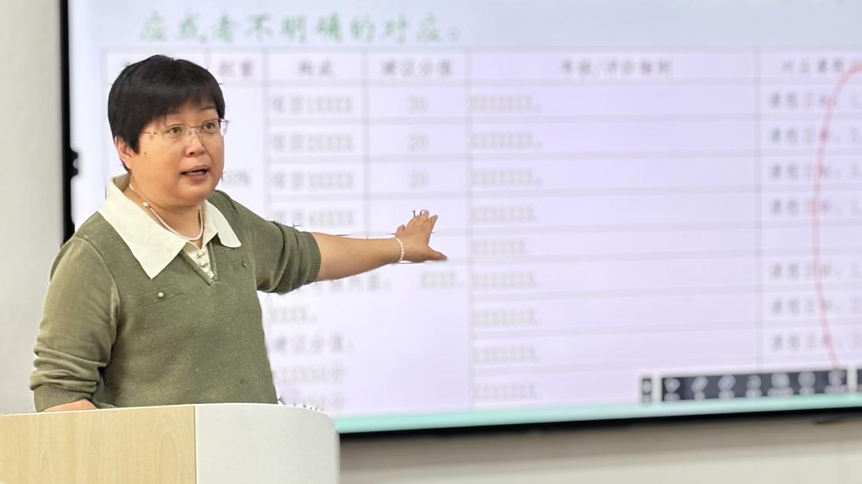 自评报告八个指标的负责人依次解读师范专业认证自评报告。盖振华老师解析培养目标与毕业要求的政策契合度和行业适配性;张晓杰老师则聚焦课程体系支撑逻辑;李敏老师阐述校企合作实践成果;展恩欣老师分析师资与资源保障;薄同娇老师解读学生发展支持条件。赵越书记总结报告框架,强调数据闭环与持续改进,要求各模块对照标准查漏补缺,以严谨态度完善材料,确保自评报告真实、全面反映专业建设成效,为迎接专家评审夯实基础。