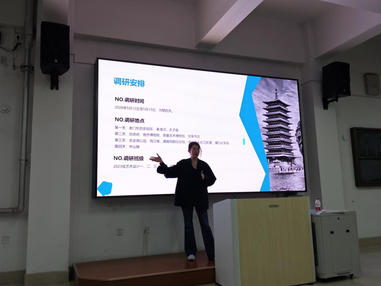 会议伊始,夏娜老师详细介绍了本次考察的行程规划与学术目标。她指出,此次南京之行将以室内设计、建筑设计、景观设计三大主题为核心,通过走访南京博物院、老门东历史文化街区、先锋书店等标志性场所,结合实地测绘、案例研讨,引导学生将课堂理论融入实践观察,为后续毕业设计的创新探索积累素材。夏娜老师特别强调,同学们需以“观察者”与“记录者”的双重身份深入体验南京作为“世界文学之都”的设计底蕴。
