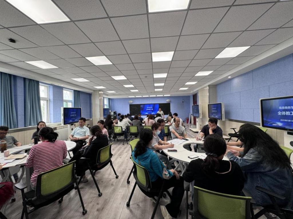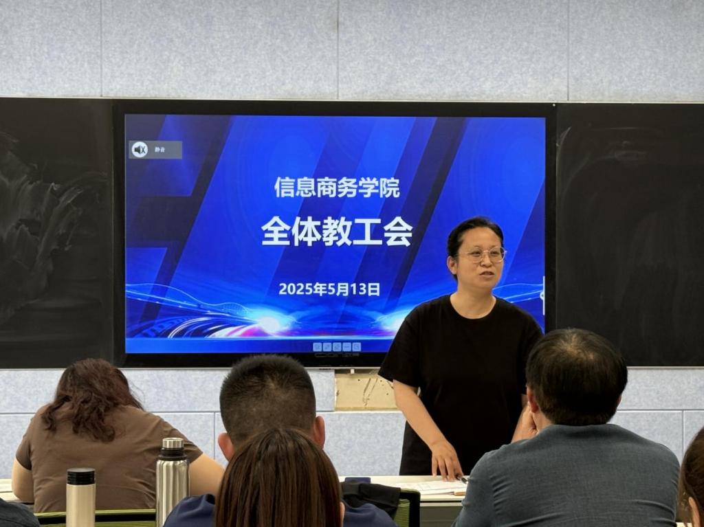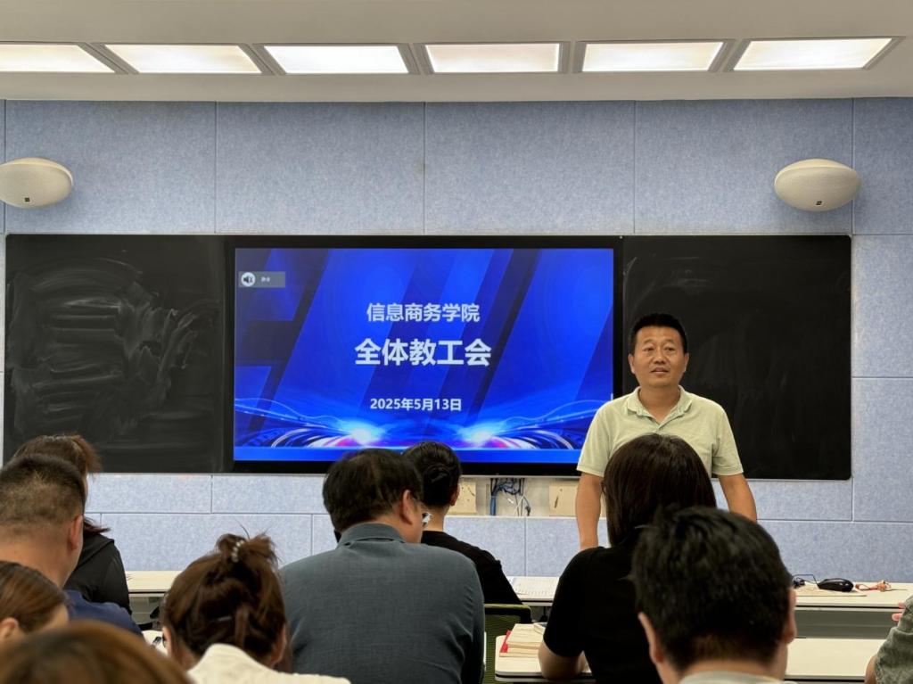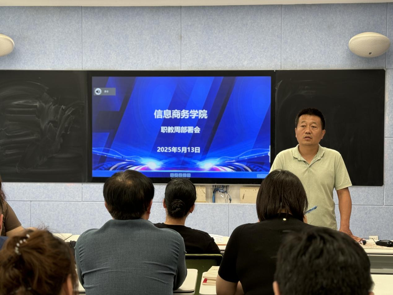 为进一步提升教学质量、深化职业教育实践、推进岗位实习工作,5月13日下午,信息商务学院在实验楼214召开全体教职工大会。会议围绕期中教学检查反馈、职业教育活动周筹备、岗位实习推进等重点工作展开研讨部署。副院长许涛主持会议,院长赵红艳及全体教职工参加会议。