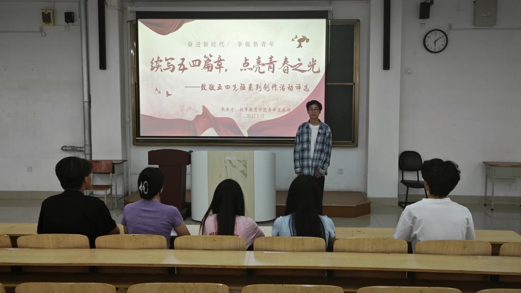 为了引导当代青年深入了解五四先驱的英勇事迹和崇高精神,增强对五四运动历史意义的认识,鼓励当代青年在新时代发扬五四精神,积极投身于学习和社会实践,初等教育学院举办“续写五四篇章,点亮青春之光——致敬五四先驱”系列活动。