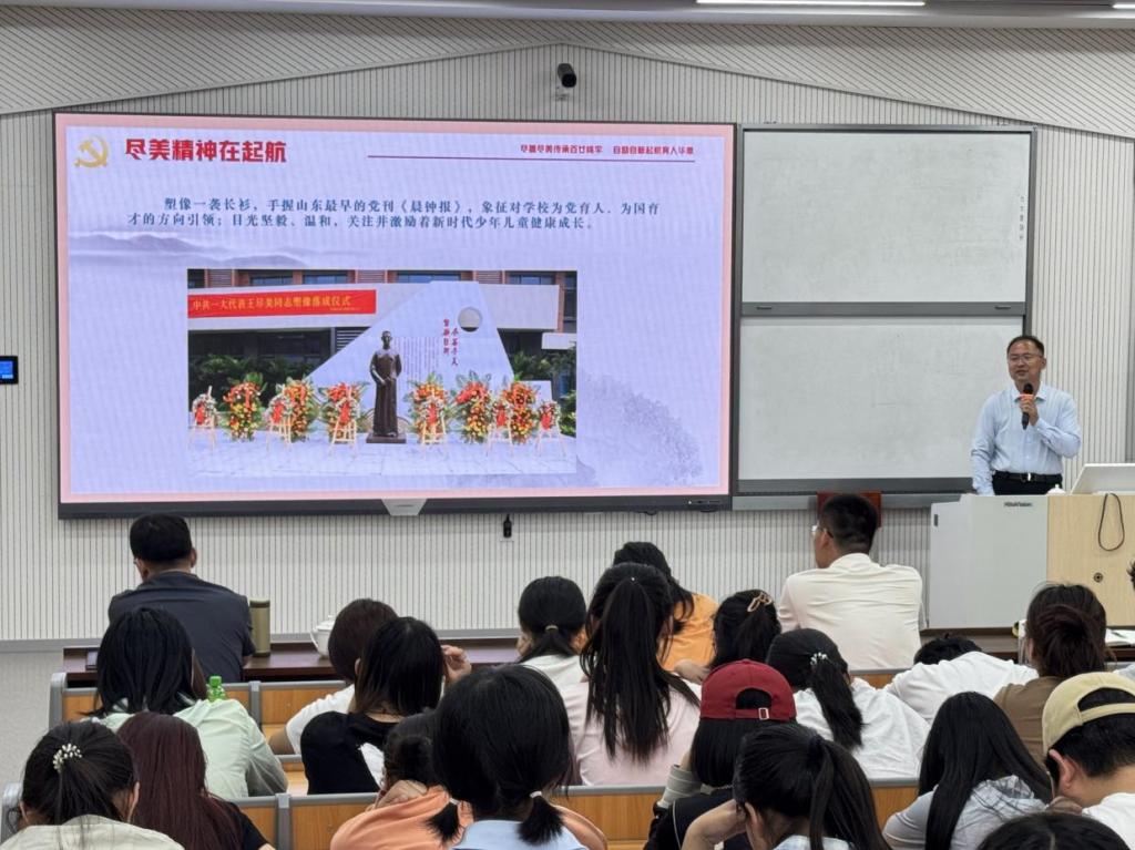 郑国栋以我校校友、中共一大代表王尽美的革命教育理想,以及校友、国学大师季羡林的治学精神为双轴,通过史料挖掘与校本实践案例,阐释两位先贤“教育救国”“学术求真”思想对新时代教师成长的启示。