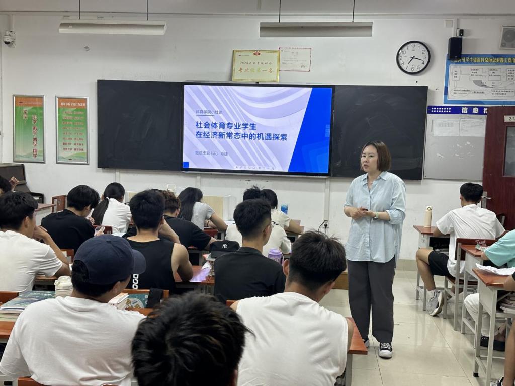 为拓宽学生职业视野,培养学生责任担当,5月20日,体育学院党总支副书记肖婕为24级社体三班讲授体院小灶课。课程主题聚焦于“社会体育专业学生在经济新常态中的机遇探索”,大家共同探讨专业学习与未来职业规划。