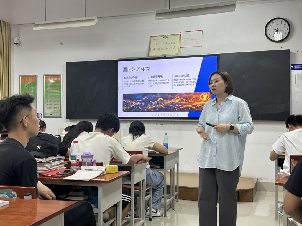 课上,肖婕副书记通过深入剖析经济新常态下的市场趋势,结合实际案例,详细阐述了社会体育专业与新兴经济领域的契合点,引导同学们以全新视角审视自身专业发展方向。同学们积极思考、踊跃提问,课堂气氛热烈。