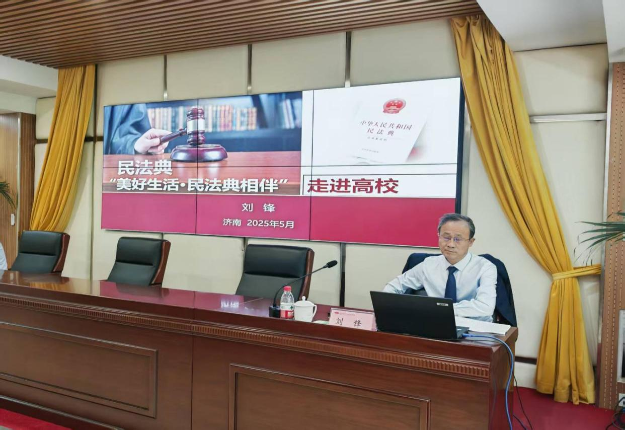 今年是国家《中华人民共和国民法典》颁布实施的五周年,五月是“民法典宣传月”。为深入学习贯彻《中华人民共和国民法典》,提升中层干部法治素养,2025年5月22日,党政办公室邀请学校法律顾问北京金诚同达(济南)律师事务所刘锋律师来校开展法治专题讲座。学校各部门负责同志、各学院院长,处级以上干部参加。