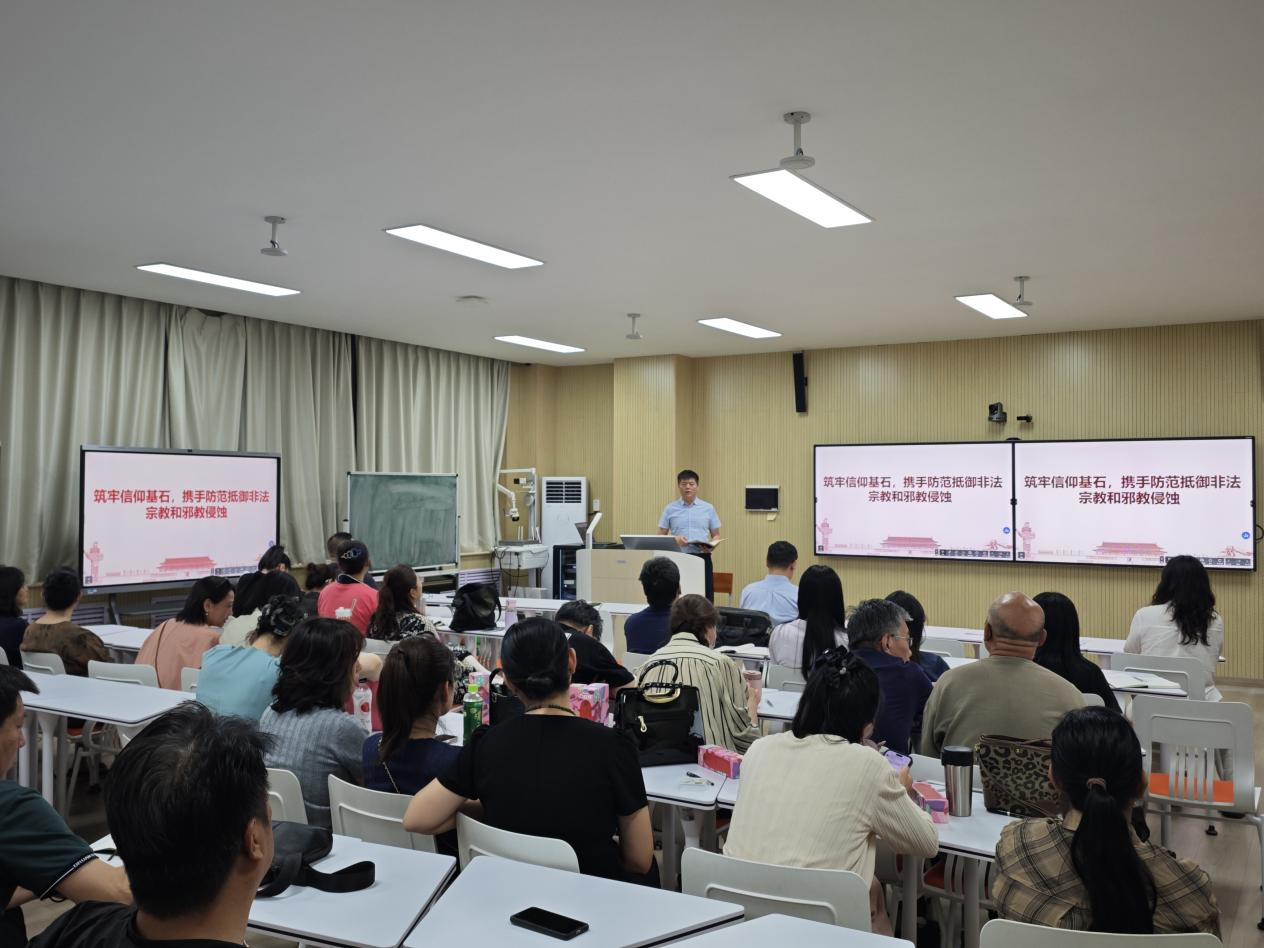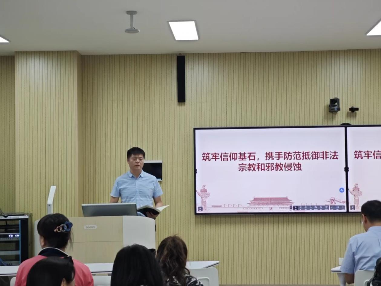 随后,艺术学院党总支书记张元帅结合党建工作要求,对全体教职工提出进一步要求。他强调,全体教师应筑牢信仰基石,在日常工作与生活中提高政治敏锐性,坚决防范非法宗教及邪教渗透。同时,他解读了《开展高校领域突出问题系统整治》,要求将师德师风整治常态化,通过自查自纠、互评互促等方式,营造风清气正的育人环境。
