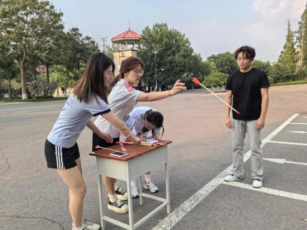 本次定向越野设置了四大趣味打卡点,巧妙地将五四精神融入游戏环节。在“猜历史代表性青年人物”关卡,选手们绞尽脑汁,凭借丰富的历史知识,快速说出李大钊、秋瑾等先驱的姓名;“趣味投壶”处,大家屏气凝神,在传统游戏中感受文化魅力;“五四精神知识问答”环节,队员们默契配合,展现出深厚的知识储备;“接唱红色经典歌曲”时,《歌唱祖国》等旋律响起,现场瞬间变成激情澎湃的“红色歌会”。每个打卡点前,选手们团结协作、攻坚克难的身影,成为校园里最美的风景线。