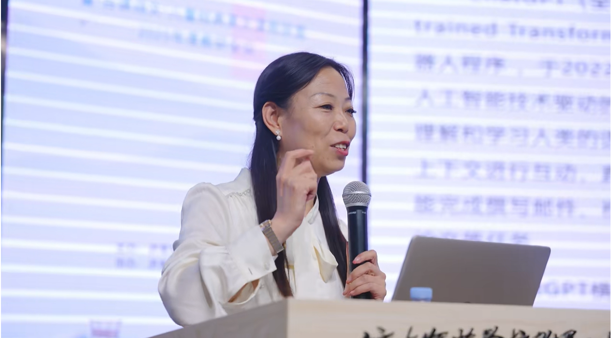 下午,我校林志芳博士,带来学术讲座《AI时代的语文课程革新》。她从专业角度剖析了AI 技术为语文课程带来的机遇与挑战,并提出了切实可行的革新路径。