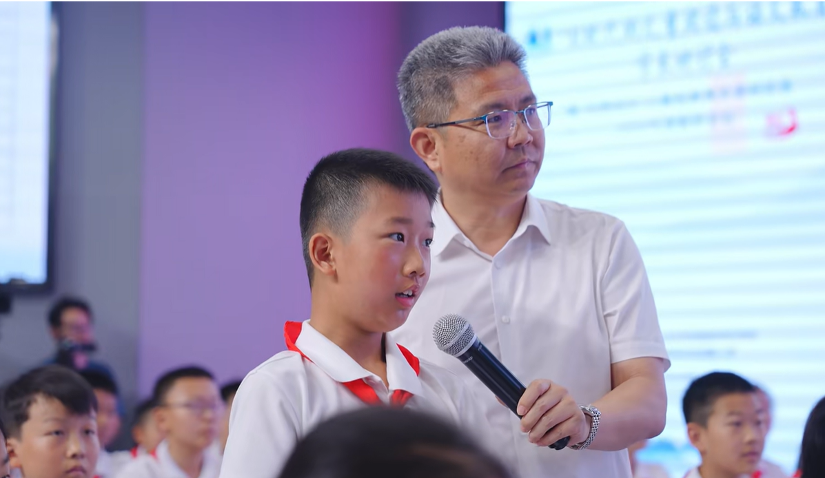 杭州师范大学教授、博士生导师,新时代中国杰出教育家荣誉获得者王崧舟,执教观摩课《最中国:月是故乡明》。王崧舟教授凭借深厚的教学功底与独特的教学魅力,引导学生深入文本,感受文学经典的魅力,将现场气氛推向高潮。