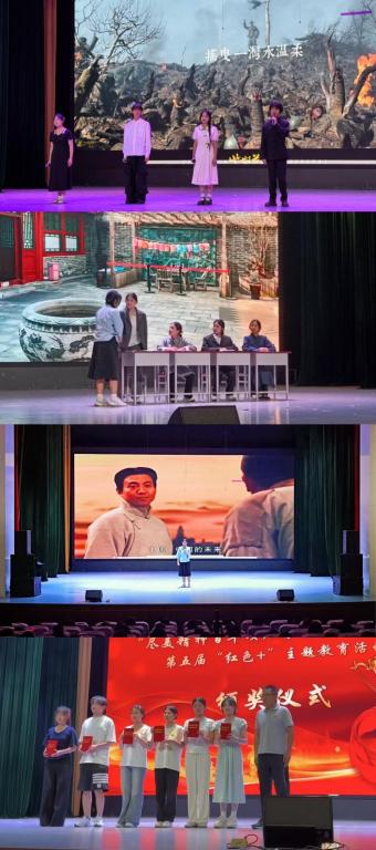 舞蹈《爱我中华》抒发对祖国的炽热深情,诠释青年对“爱我中华”的生动践行;朗诵《觉醒年代》重现那个思想觉醒、热血澎湃的年代,唤起大家对历史使命的思考;情景剧《暗夜星火》演绎黑暗中不灭的希望火种,传递坚守与担当;合唱《保卫黄河》激昂的歌声,奏响民族奋进的强音,展现青年传承力量的决心。期间,“红色+”主题教育系列活动颁奖环节隆重进行,学校纪委副书记刘晶为获奖同学颁奖,同时也勉励大家铭记红色使命,在新时代奋勇笃行。