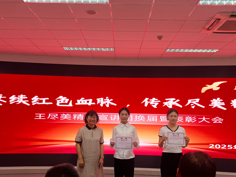 在活动中,社团指导教师杨忠艳回顾了社团取得的成绩,肯定了社团成员勇于担当的精神品质。王岩、张大明为郑丹阳、徐西婷等获奖同学颁发了“金牌讲解员”“优秀讲解员”荣誉证书。高衍玉宣布王尽美精神宣讲团2025 - 2026学年负责人名单,并颁发委任书。