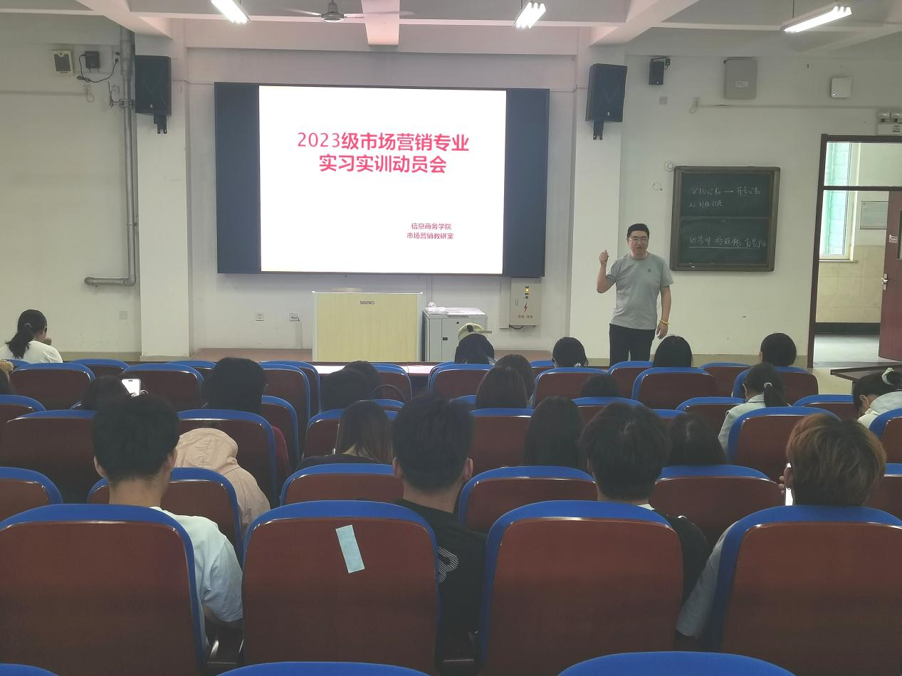 6月17日,市场营销教研室在初等楼第十阶梯教室举行2023级市场营销专业学生的实习实训动员会。此次大会旨在助力信息商务学院市场营销专业学子顺利迈向实习实训阶段,明确职业发展方向。市场营销教研室主任王桂东、崔元丽老师出席会议,全体学生积极参与,共同开启从校园到职场的跨越之旅。