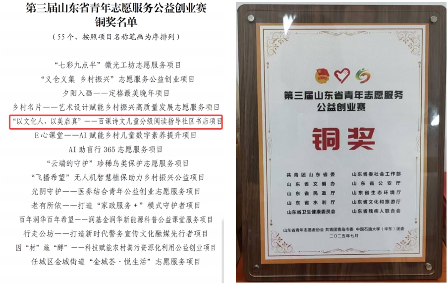 此次获奖不仅是对“百课诗文”项目团队的高度认可,也是济南幼儿师范高等专科学校在志愿服务工作上的一次重大突破。学校将以此为契机,进一步推动青年志愿服务与公益创业的深度融合,鼓励更多青年学子投身志愿服务事业,为社会发展贡献青春力量,同时也期待项目在未来能够不断拓展服务领域,让更多社区儿童和家庭受益于优质的阅读指导服务。