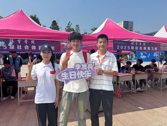 值得关注的是,迎新当日恰逢新生李发兵生日。体育学院在获悉该情况后,迅速筹备专属生日展板,在迎新现场为其送上生日祝福。李发兵表示:“入学首日便能收到学院的生日关怀,切实感受到集体温暖,也更期待未来的大学生活。”