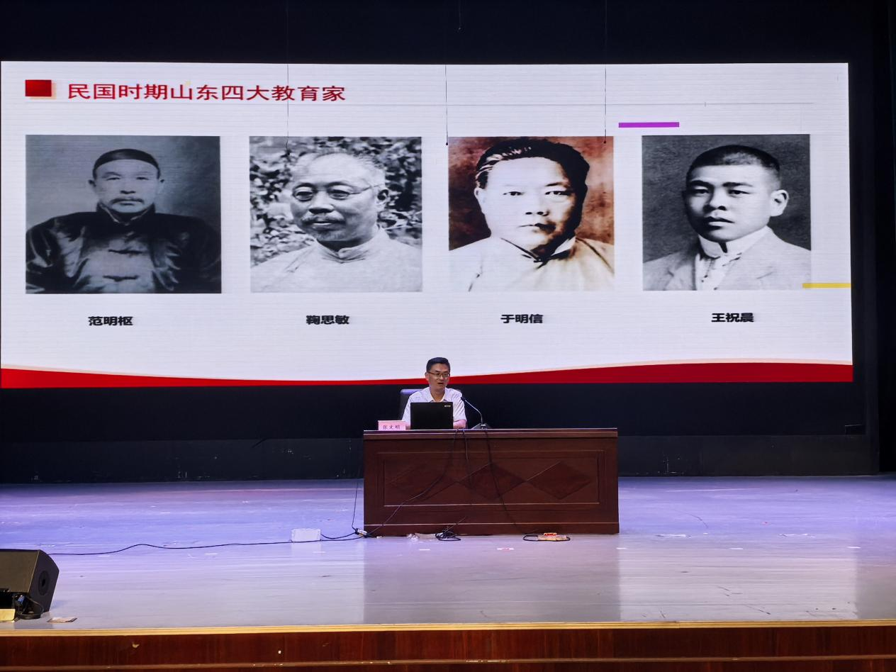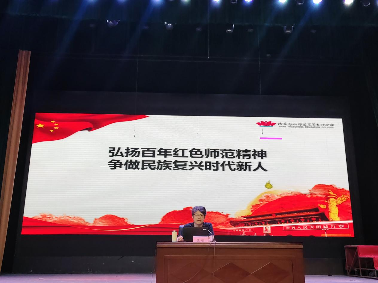 首先,王蕾以“弘扬百年红色师范精神”为主题开讲,通过带领同学们回溯校史,重点介绍了一大代表、校友王尽美,结合中国人民抗日战争暨世界反法西斯战争胜利80周年时间节点,勉励新生传承红色基因,弘扬百廿师范精神,争做时代新人。