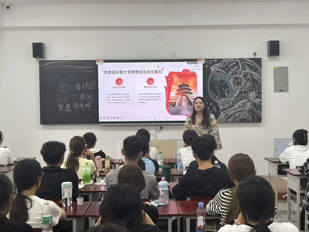 之后开展的党团发展专题教育中,学院团总支书记鲍天珊以“党团引领青春成长”为核心,为新生普及党团知识。在党团基本认知环节,她清晰阐明中国共产党与共青团的性质、宗旨、历史使命,以及党团对青年成长的引领价值;在团员发展与管理部分,明确入团条件、流程及团费缴纳、组织关系转接等要求,让新生明晰团员责任;在党员发展解读中,拆解从积极分子到预备党员转正的全流程,强调思政表现、学业成绩、社会实践等核心考核标准。此外,鲍老师还分享了学院党团特色活动,鼓励新生主动参与,树立正确政治追求。