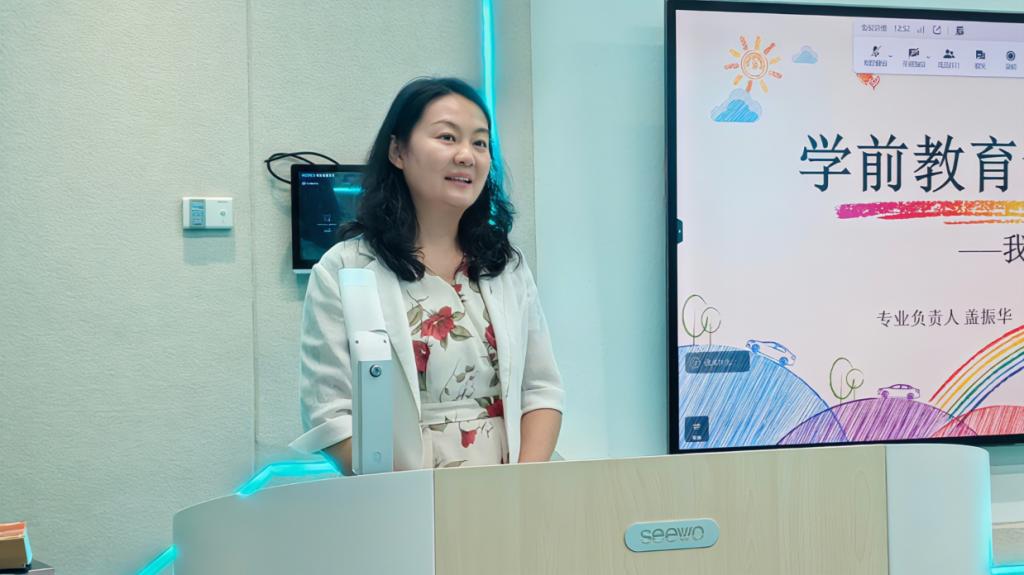 盖振华围绕“why”“who”“what”“where”四个维度展开讲解。她系统梳理了学前教育专业从萌芽到蓬勃发展的历程,引导新生深入思考专业价值与意义。同时,她结合职业实例,帮助新生清晰把握专业发展趋势与就业方向,进一步增强了同学们的专业认同与学习信心。她通过展示保教技能竞赛中,选手们在活动设计环节的精彩表现,分享其中蕴含的先进教育理念与实用技能经验,她引导同学们明确了今后的学习方向,帮助新生们系统掌握学前教育及相关领域的专业知识,具备扎实的保教实践能力,以更好地适应现代学前教育及早教、托育等行业的发展需求。