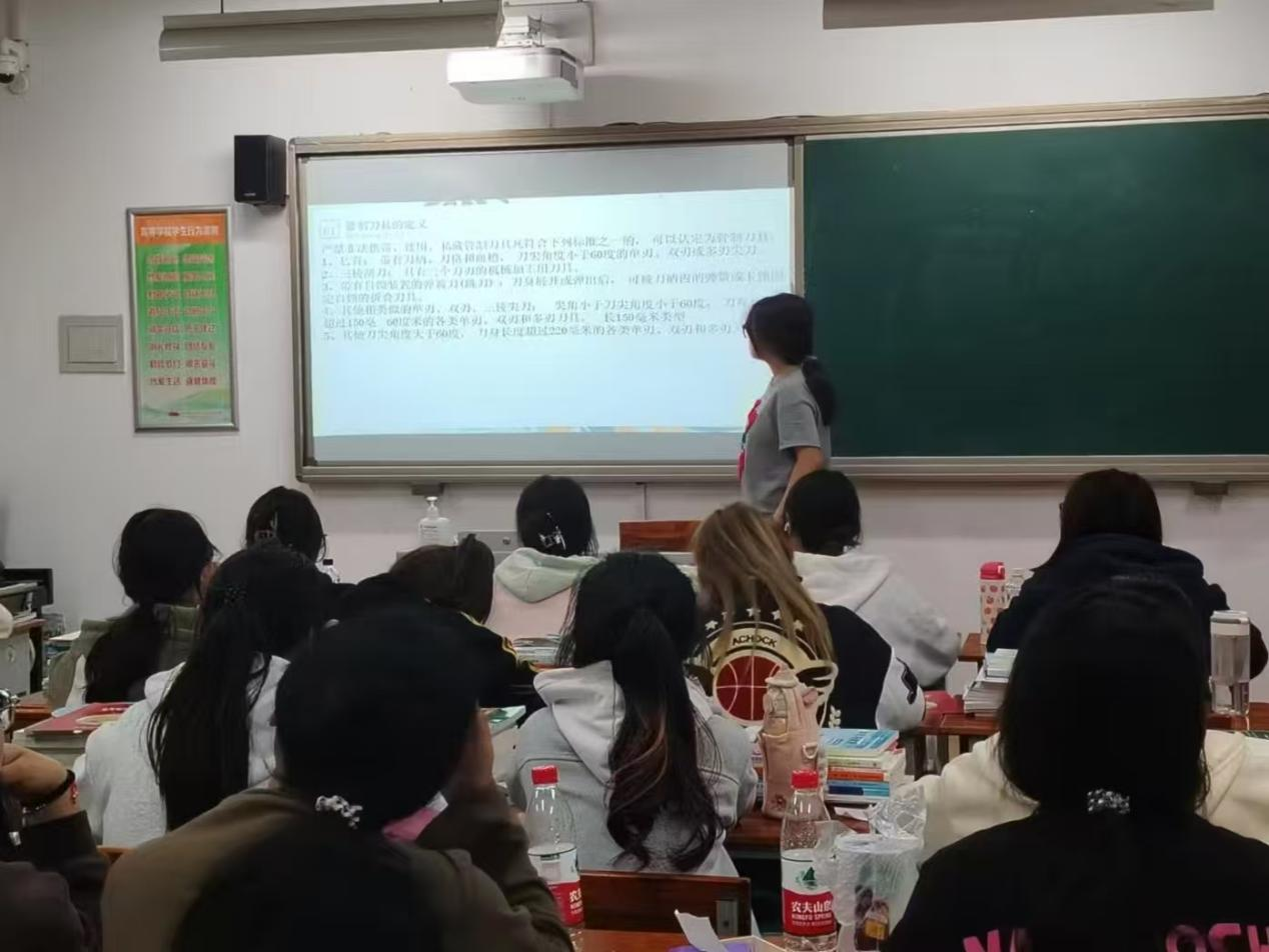 辅导员们还结合近年来发生的典型案例,深入剖析了事故背后的危害,并解读了相关法律规定,让学生从“知危害”到“明底线”,切实树立起“管制刀具不可碰”的认知。