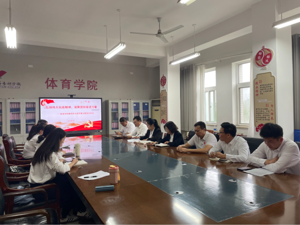 为引导支部党员深刻领会伟大抗战精神的丰富内涵,进一步增强历史使命感与责任感,凝聚支部合力,推动爱国情怀与育人初心深度融合,为后续教育教学工作注入强大精神动力。9月23日,体育学院教师党支部围绕“弘扬伟大抗战精神,凝聚团结奋进力量”主题,组织召开主题党日活动。全体党员教师参加活动,新入职党员也首次融入支部集体,会议议程严谨、内容充实。