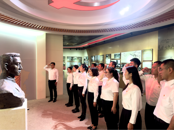 会议最后,全体支部党员前往尽美展馆,在鲜红的党旗下整齐列队,举起右拳庄严重温入党誓词。铿锵有力的誓言回荡在展馆内,不仅强化了党员的身份意识与责任意识,更将弘扬伟大抗战精神、践行初心使命的信念深深植根于每位党员心中,为本次主题党日大会画上圆满句号。