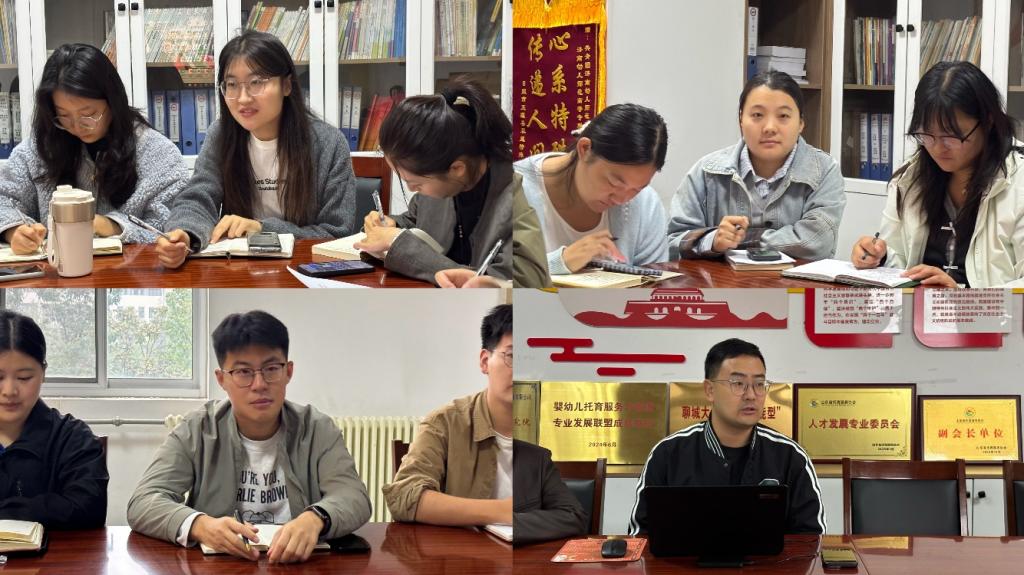 2025年10月10日,学前教育学院在317会议室召开“师德灯塔·书香赋能”系列活动,此次活动旨在通过辅导员的集体研读学习和经验分享,提升辅导员的工作能力,也推动学院学生管理与发展的创新与提升。活动由学前教育学院学工办主任张晋主持,学前教育学院党总支部书记杨勇及全体辅导员参与。