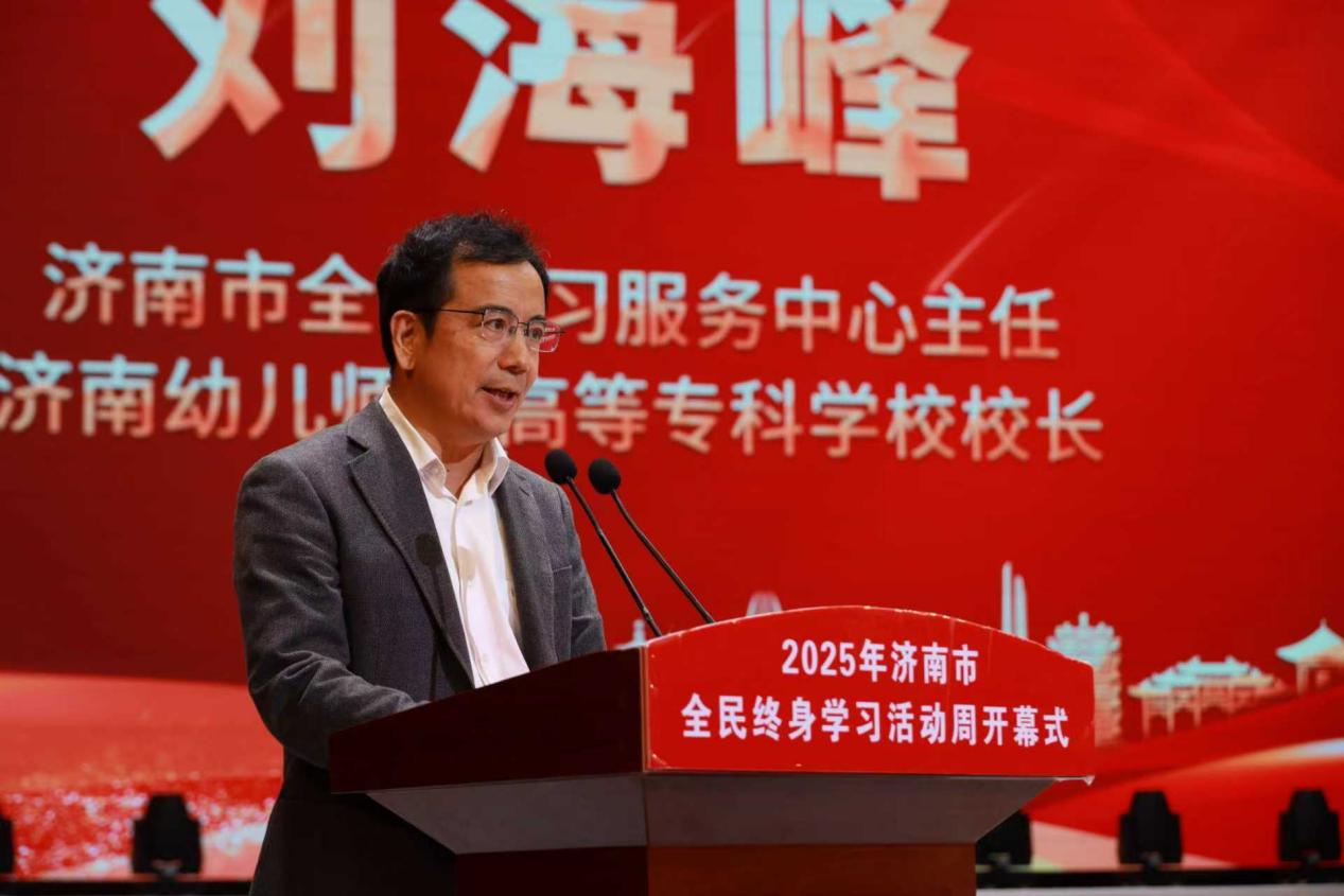 接下来,济南市全民学习服务中心主任、济南幼儿师范高等专科学校校长刘海峰系统介绍了中心终身学习工作成果。他回顾道,2013年济南市政府将“建设全民学习公共服务平台”列入“为民办实事”项目,市全民学习服务中心依托我校应势成立,全面开启了服务全民终身学习的实践探索。截至目前,中心在全国首创“连锁超市式”社区学习中心;构建起“学习平台+服务载体+精准治理”的一体化架构;牵头制定社区教育工作流程与绩效标准,持续开展全市社区教育工作者培训;成立全国首个“学习型城市建设高校支持网络”。2024年,济南市已入选首批全国学习型网络城市,全民终身学习氛围日益浓厚。