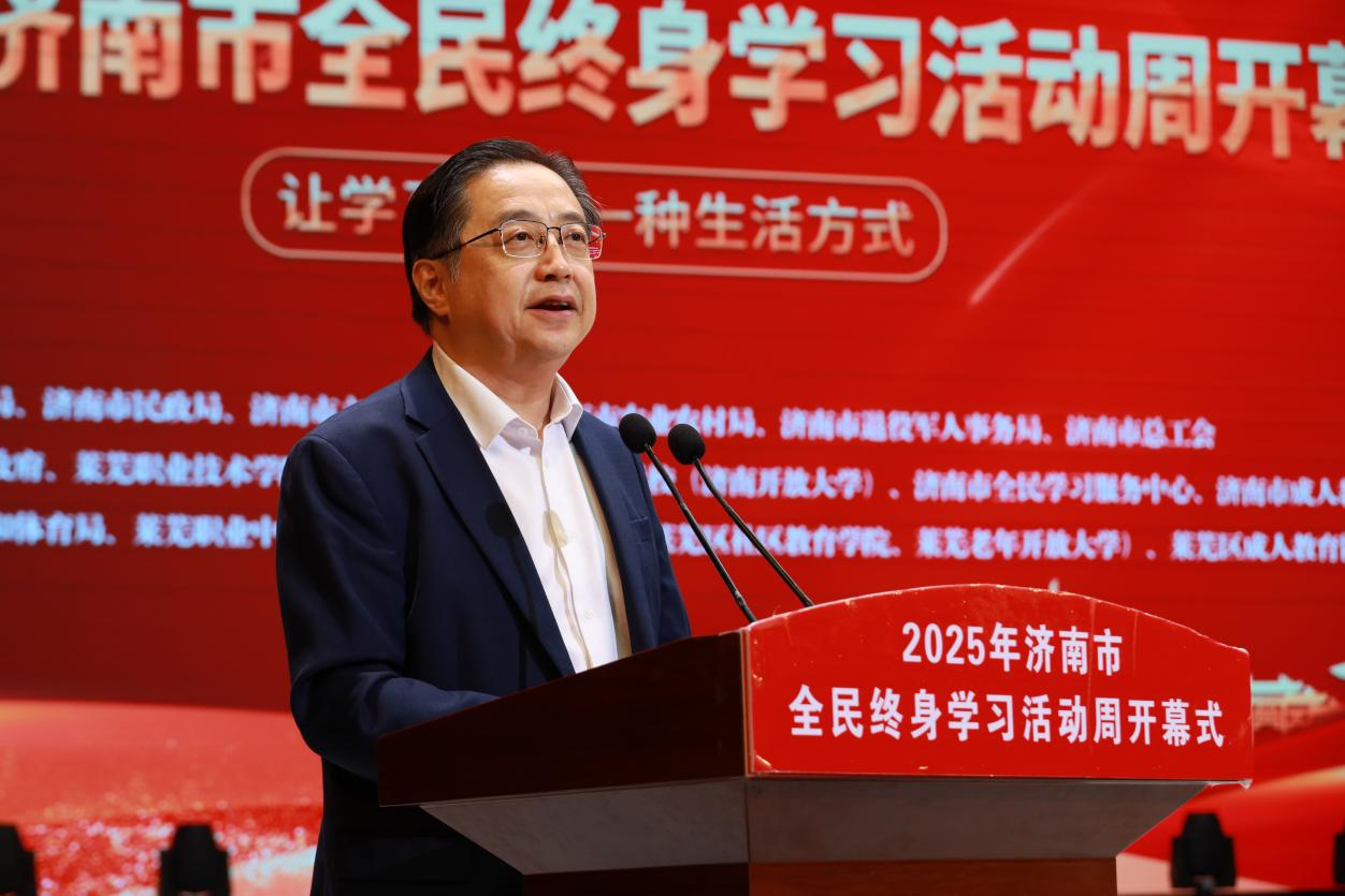10月10日,2025年济南市全民终身学习活动周在莱芜区开幕。山东省教育厅二级巡视员、民办教育与继续教育处处长邓俊庆,济南市人民政府党组成员、副市长任广锋,山东开放大学党委副书记、校长司家军,山东成人教育协会副会长谢明浩,莱芜区委副书记、区长李光辉出席活动,济南市委教育工委常务副书记,市教育局党组书记、局长王纮主持开幕式。