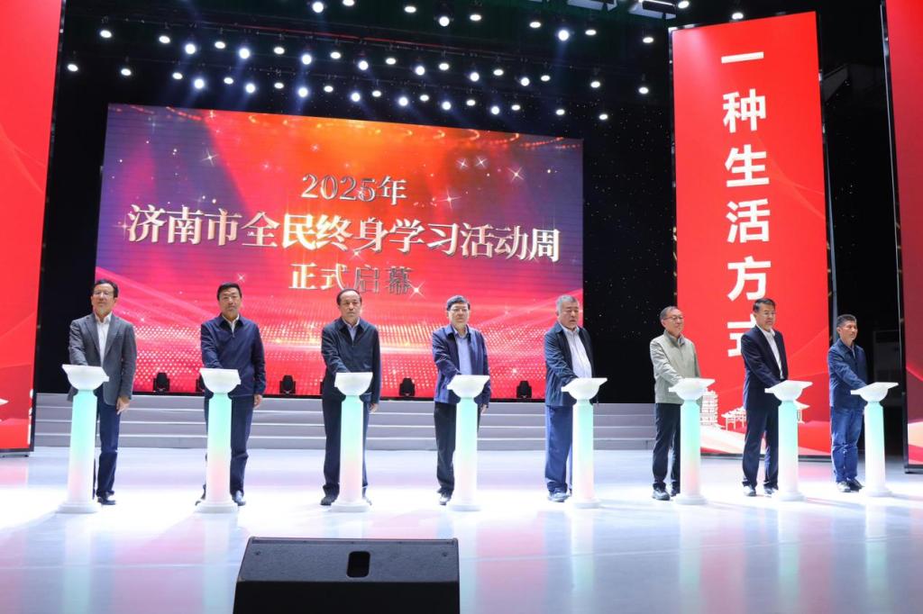 开幕式的最后,与会主要领导共同点亮活动周启动柱,将全场气氛推向高潮,标志着2025年济南市全民终身学习活动周正式启动。