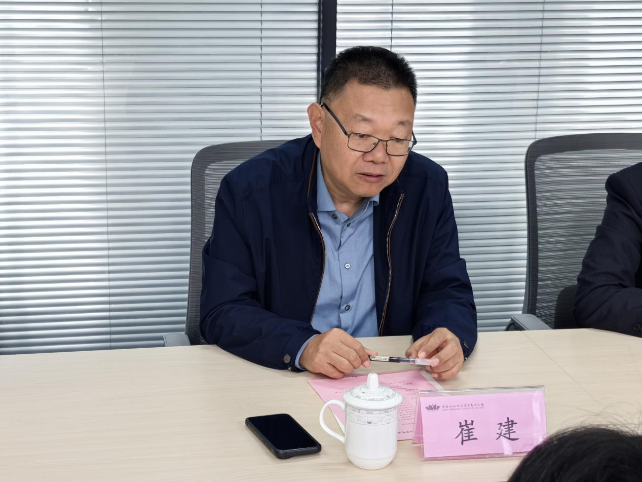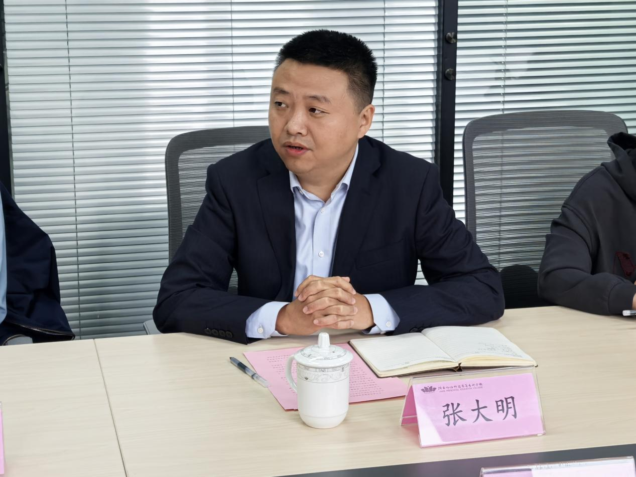 接着,学院党总支书记张大明详细介绍了学院的整体情况。他从学院师资队伍构成、近年来学院教师取得的教学科研成果、实践教学开展情况以及学院未来发展规划等方面作了全面阐述,并特别介绍了学校党史馆、校史馆的建设意义,展现了学校深厚的历史底蕴与鲜明的育人特色。