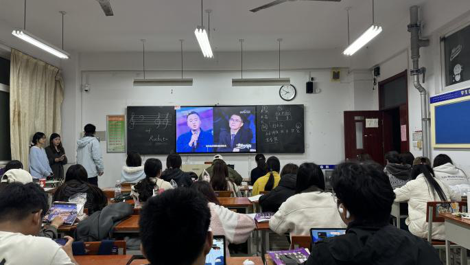 艺术学院结合学生实际情况,精心部署,采取了灵活多样的观看形式。对于在校学生,学院以班级为单位,组织集中观看学习,确保覆盖全体。集中观看现场秩序井然,同学们聚精会神,沉浸于优秀学子们追逐梦想的动人故事中。对于在校外实习的毕业班学生,学院也通过线上渠道及时发布节目信息,要求学生们结合自身实习安排,利用网络平台进行个人观看学习。
