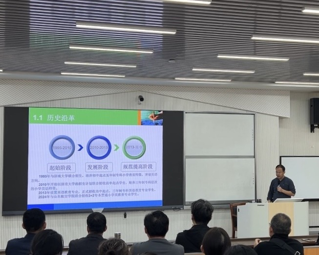 随后召开的“说专业”专题会议上,小学英语教育专业负责人宋见波从五个方面系统汇报了小学英语教育专业建设情况,同时也客观指出专业现存的问题,如专业特色辨识度需强化、师资学历与职称结构待优化、优质课程资源储备不足、社会服务资金到账未突破等。