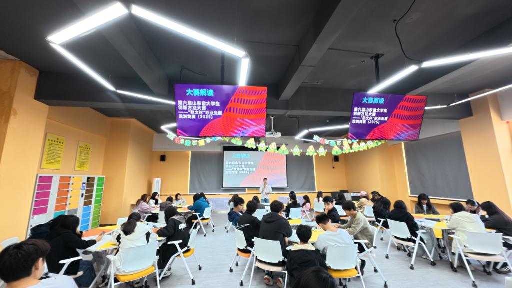为积极备战第六届山东省大学生创新方法大赛——“凯文杯”职业生涯规划竞赛(2025),济南幼儿师范高等专科学校海科信创产业学院于2025年10月13日下午特设专题解读会,为2024级大数据技术与电子商务专业学生提供权威赛事指导,本次活动旨在深化学生对赛事的理解,激发参赛热情,并有效衔接专业学习与职业发展,活动特邀山东省创客协会大学生职业生涯规划专委会主任、产业学院特聘专家关存敬主任主讲。