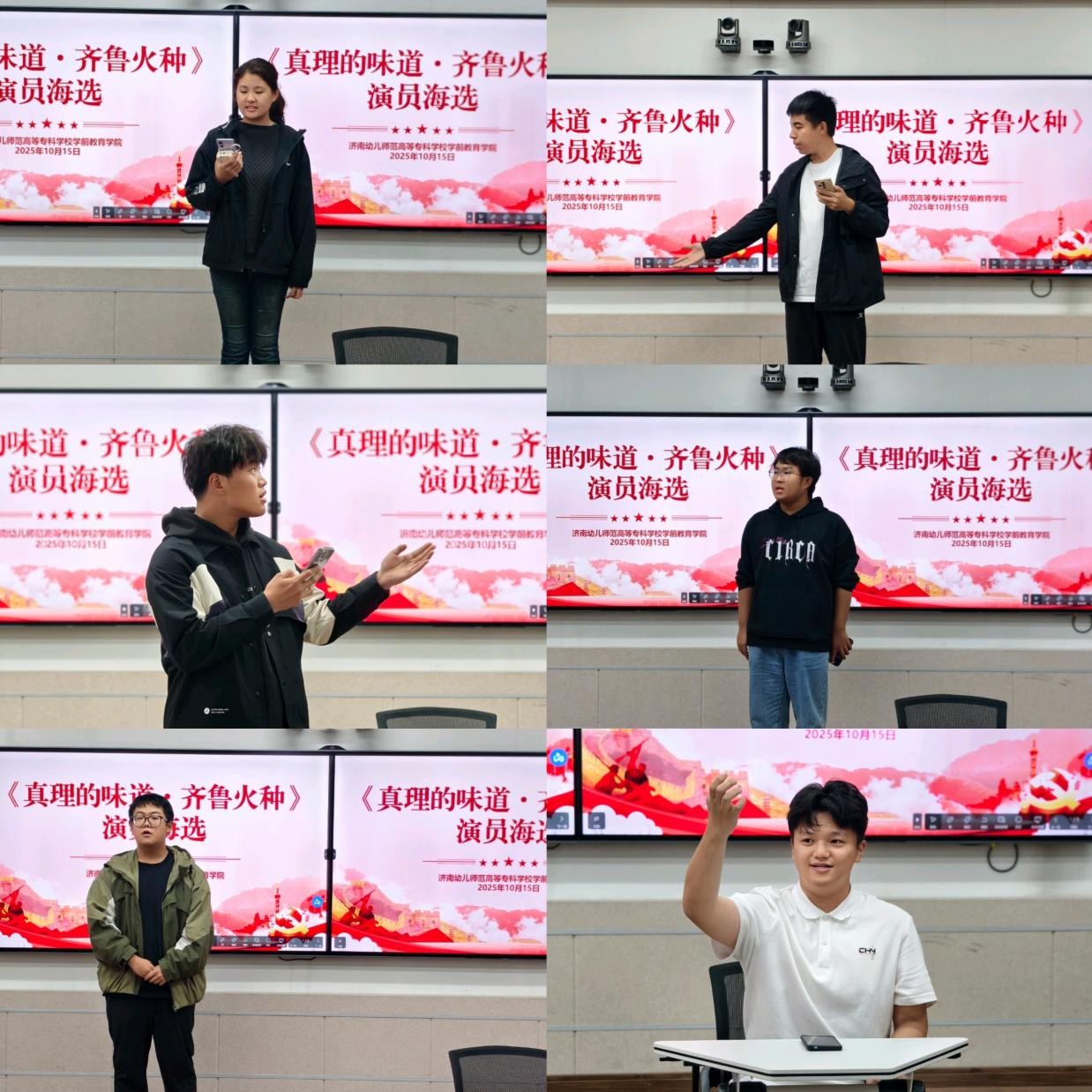 为传承红色基因、厚植家国情怀,将红色文化浸润与学前专业教育创新融合,近日,学前教育学院在学前楼智慧教室301开展红色剧本杀《真理的味道·齐鲁火种》演员海选活动。该剧由我校携手山东省委党校四五党性教育基地联合出品,以陈望道翻译《共产党宣言》时的“真理的味道非常甜”与山东本土革命实践为双脉络,是学院探索“专业教育赋能红色育人,红色育人反哺专业成长”的创新载体。学前教育学院党总支书记杨勇,辅导员宋猛、王成森组成专业评委团,从角色塑造、专业表现力等多维度为选手把脉赋能。