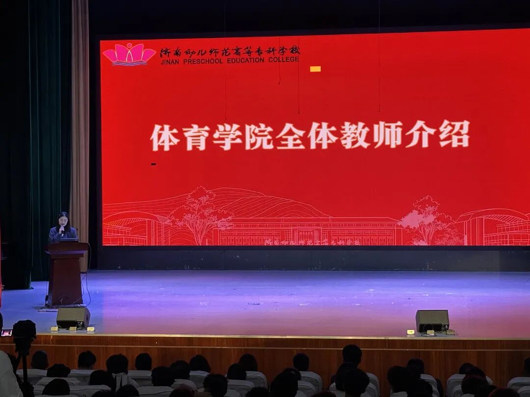 典礼第一项——体育学院全体教职工介绍。伴随着大屏幕的点亮,老师们的教研方向、专业特长逐一呈现。既彰显学院雄厚师资,也让新生真切感受教师队伍的专业,为后续师生交流、学习筑牢基础。