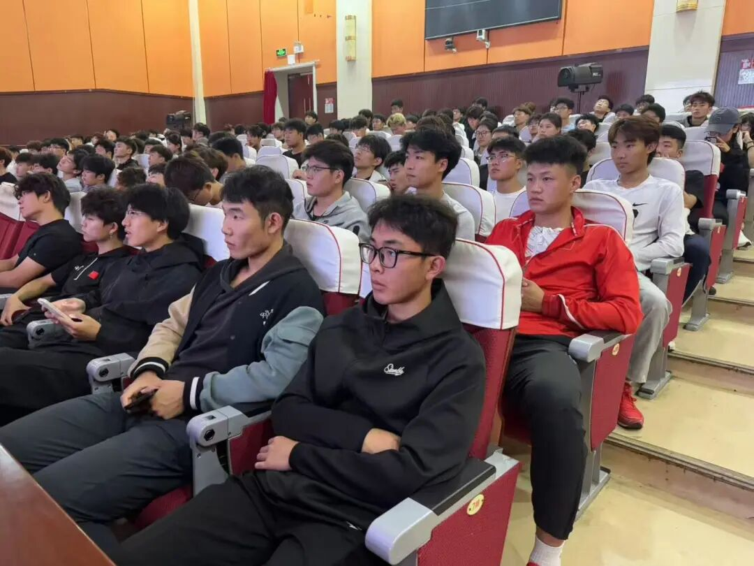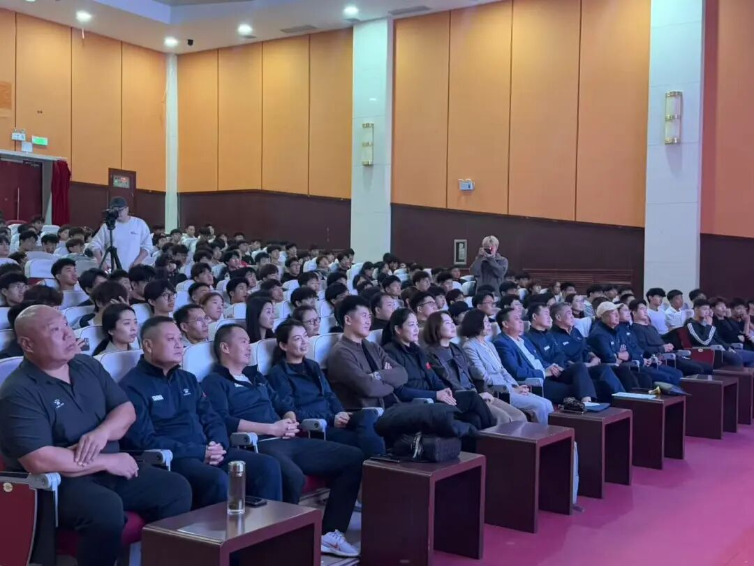 典礼第三项——体育学院院长张春波讲授思政课。从三方面引导新生找准定位:一是 “读懂学校”,细数办学底蕴与实力,助新生获归属感;二是“认识学院”,回顾教学、竞技成绩,展现学院作为体育人才培育高地的实力;三是“牢记三项专业要求”,结合学科特色明确优秀体育人素养,为新生划定发展路径。