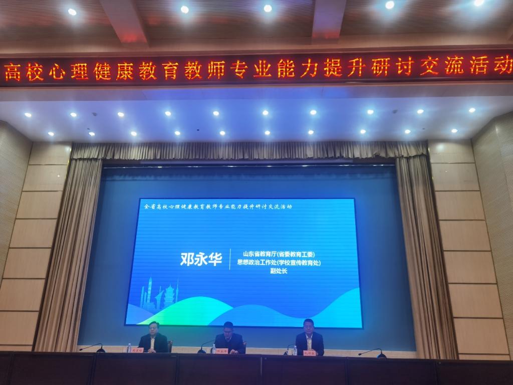 10月23日,我校心理健康教育指导中心主任逄霞受邀在全省高校心理健康教育教师专业能力提升研讨交流活动中,分享我校心理健康教育工作经验。山东省教育厅思想政治工作处副处长邓永华出席会议并讲话。来自全省各高校的学生工作负责人、心理中心教师及辅导员骨干等参加了活动。