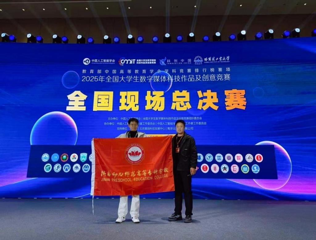 2025年10月26日,“2025年(第十三届)全国大学生数字媒体科技作品及创意竞赛”全国总决赛在哈尔滨圆满落幕。信息商务学院人工智能技术应用专业学生朱扬飞在丁天乾老师的指导下,凭借扎实的专业功底、创新的作品设计和出色的现场表现,从全国众多参赛队伍中脱颖而出,荣获全国二等奖。