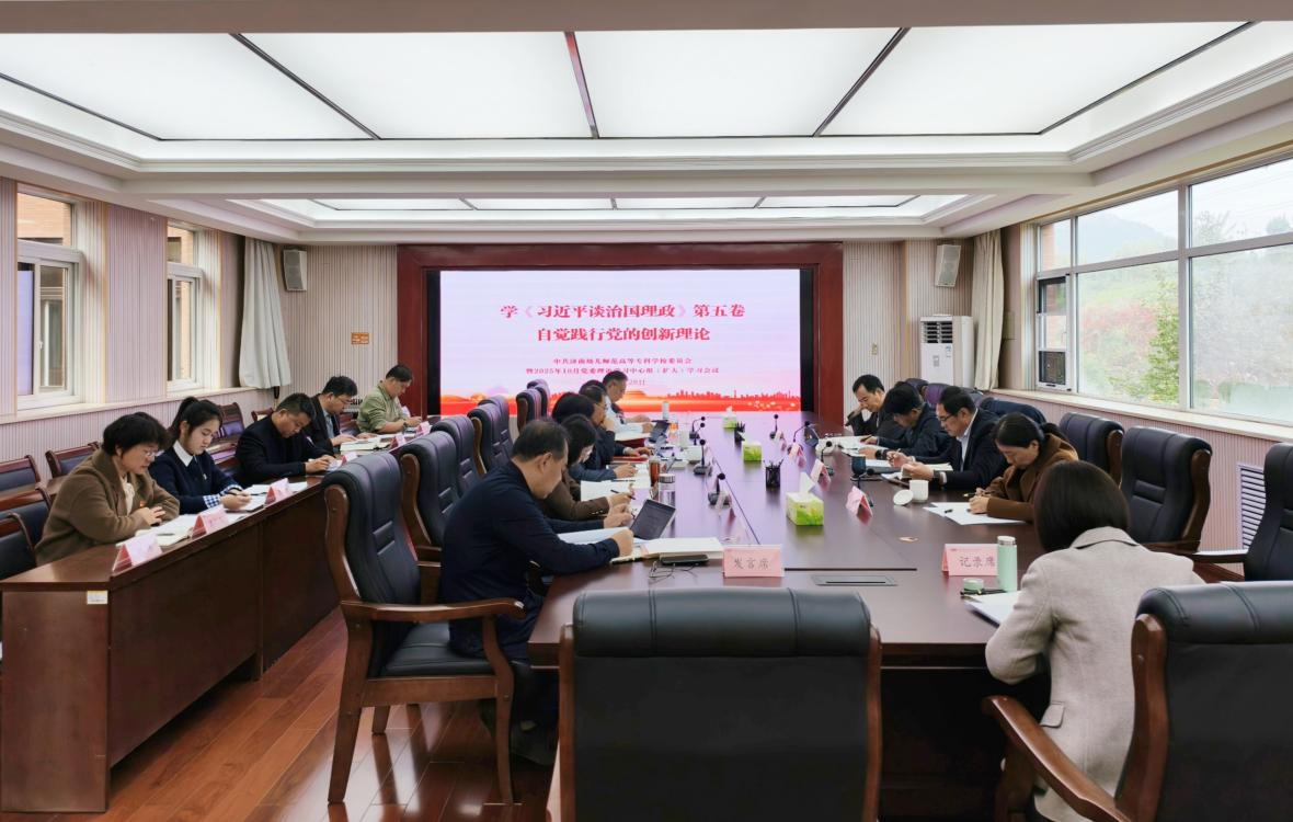 会议指出,《习近平谈治国理政》第五卷作为党的创新理论最新成果,系统阐述了中国式现代化的本质要求与实践路径,为教育领域指明了“为党育人、为国育才”的战略方向;党的二十届四中全会聚焦“十五五”规划制定,将第五卷的理论转化为国家发展战略,为教育系统融入国家发展大局提供了行动框架;学校作为教育主阵地,需要将上述理论与政策转化为生动实践,围绕新质生产力需求,优化人才培养结构,服务现代化产业体系建设,深度融入民族复兴伟业。