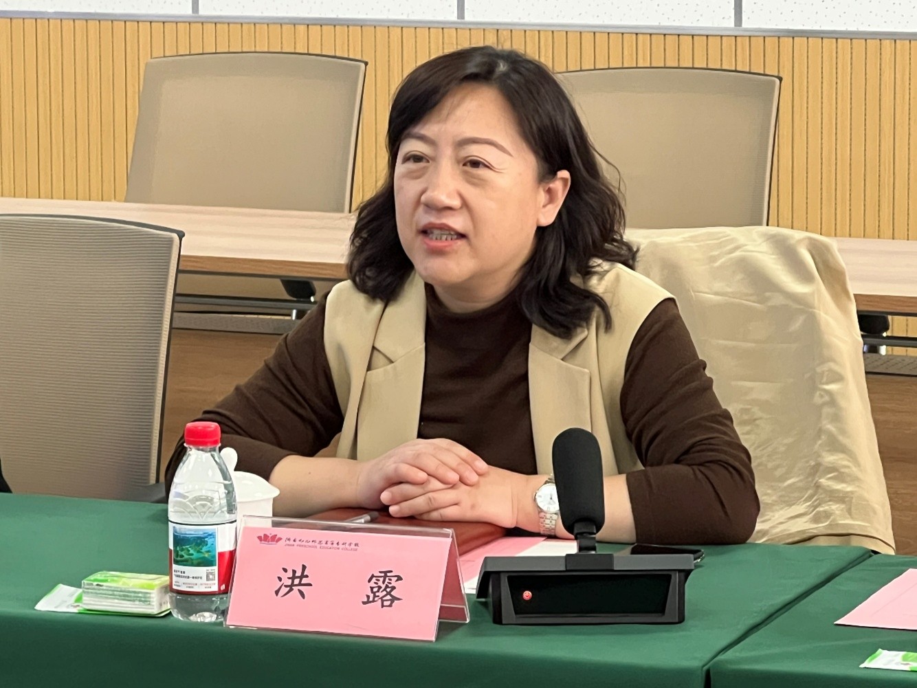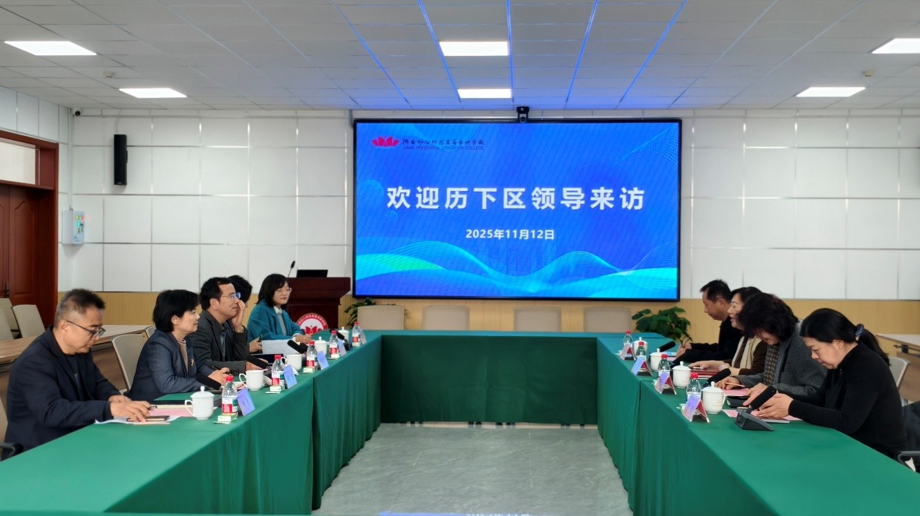 为深化校地合作,推动区域托育服务高质量发展,11月12日上午,历下区副区长洪露、区卫健局局长仵爱之一行到访济南幼儿师范高等专科学校,双方举行交流座谈会。学校党委副书记、校长刘海峰,党委委员、副校长林静热情接待并出席会议,相关学院及部门负责人参加座谈。