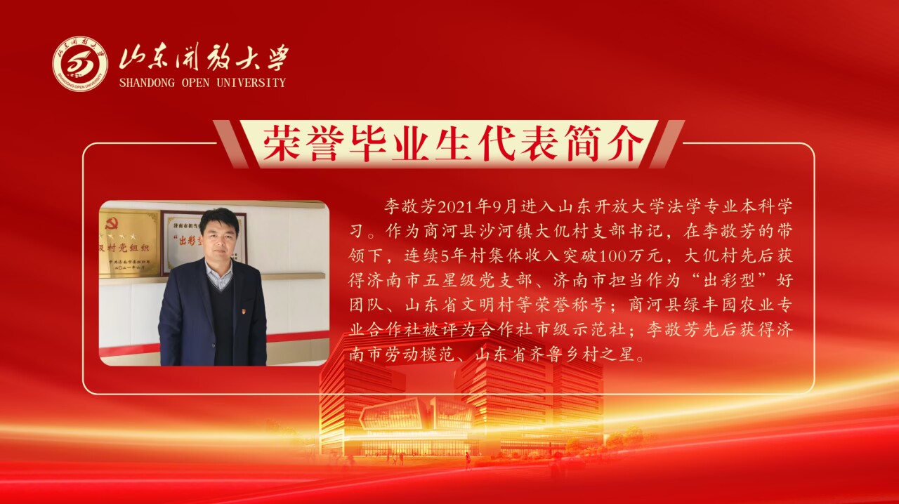 近日,国家开放大学发布了《关于公布2024年度国家开放大学奖学金获奖学生名单的通知》(国开学生函[2025]5号)和《关于公布2024年度国家开放大学优秀毕业生名单的通知》(国开学生函[2025]8号),山东开放大学发布了《山东开放大学关于公布2024年度开放教育奖学金、助学金获奖学生名单的通知》(鲁开大开放函[2025]29号)和《山东开放大学关于公布2024年度开放教育优秀毕业生名单的通知》(鲁开大开放函[2025]16号),我校开放教育杨建筑等48名在校生获得国家开放大学奖学金,李敬芳等5名毕业生获得国家开放大学优秀毕业生荣誉称号,马龙峰等15名在校生获得山东开放大学奖学金,周胜伟等6名毕业生获山东开放大学优秀毕业生荣誉称号。