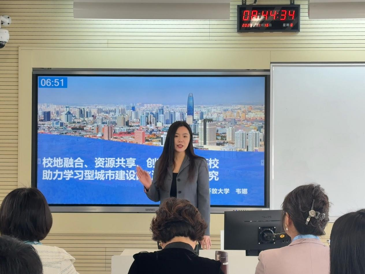 在“社区教育与文化养老”分论坛中,我校以“校地融合、资源共享、创新驱动:高校助力学习型城市建设的‘济南范式’研究”为题,系统阐释“济南学习型城市建设高校支持网络”的构建逻辑与实践成果。重点介绍了我校作为市域开放大学,如何发挥组织枢纽作用,整合驻济高校的学术资源、师资团队、科研能力与数字平台,构建协同共建机制,实现优质资源向社区的精准辐射与深度赋能。该模式清晰呈现了高校作为“资源锚点”与“能力孵化器”在终身教育体系中的核心功能,为同类城市推进学习型社会建设提供了可复制、可落地的“济南方案”。报告内容引发了与会代表的浓厚兴趣,彰显出该成果所具有的实践价值与推广潜力。