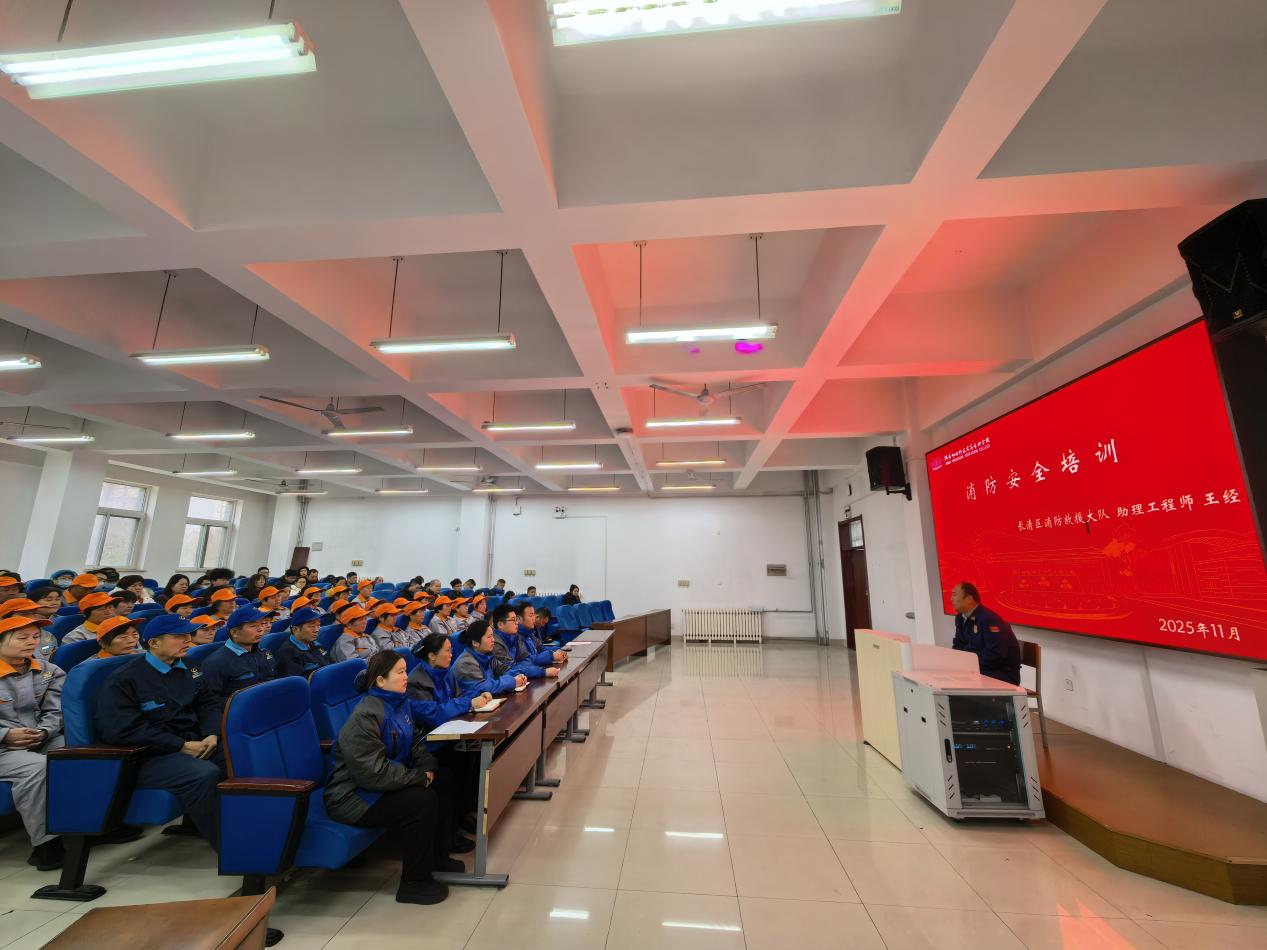 2025年11月为全国第34个“消防安全月”。为全面贯彻“预防为主,生命至上”的消防工作方针,切实提升校园后勤服务队伍的消防安全意识和应急处突能力,11月23日,学校总务处精心组织了一场面向所有第三方服务公司的消防安全专项培训。本次培训特邀长清区消防救援大队助理工程师王经同志担任主讲,物业、绿化、餐厅、维保等全体在校服务的第三方公司员工参加了此次培训。