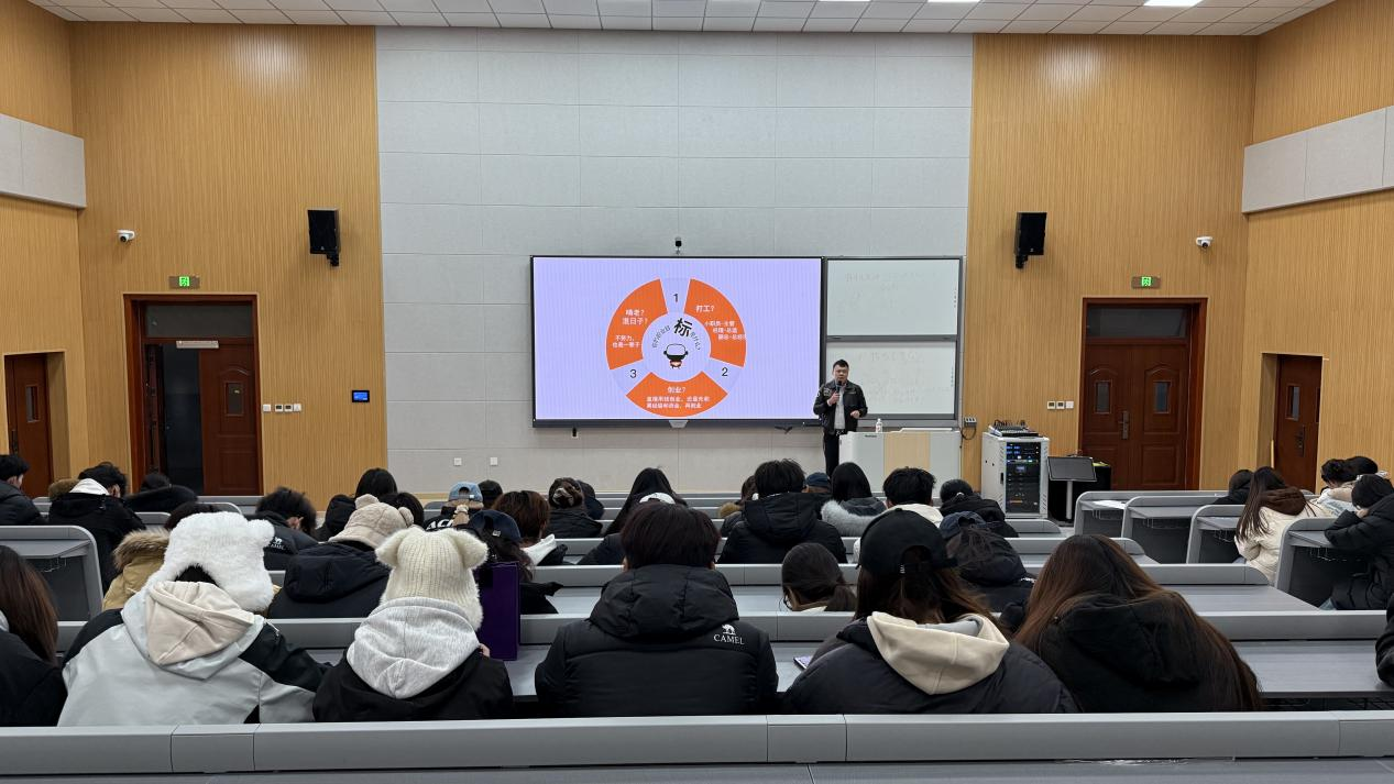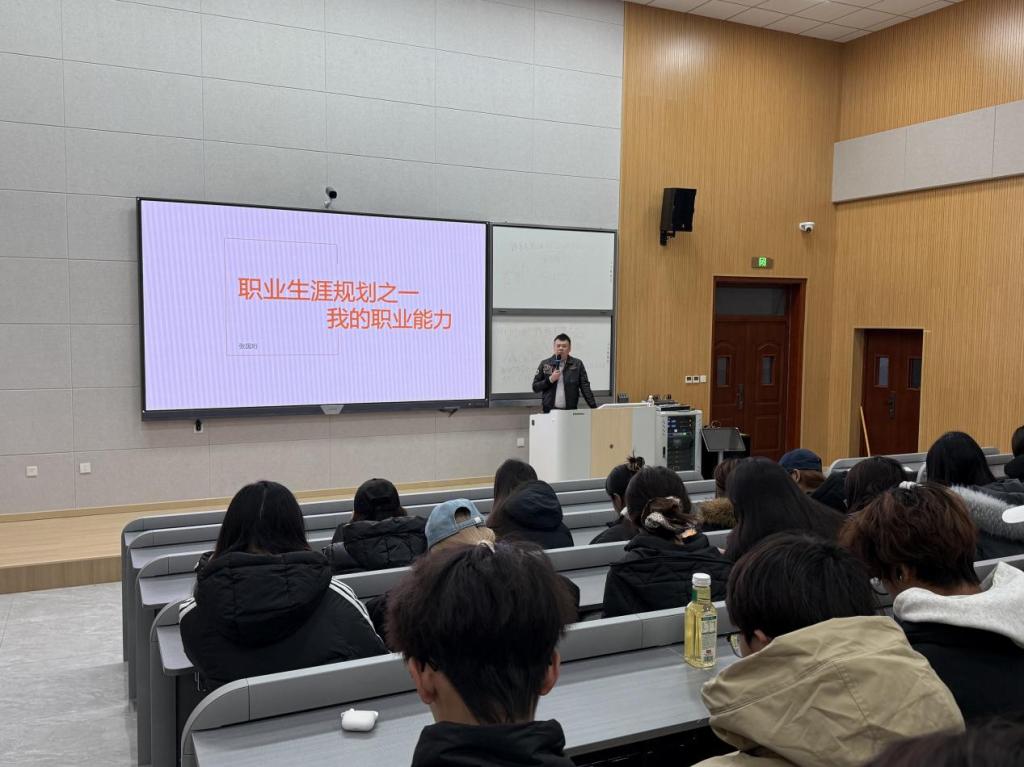 聚焦职业能力,破解成长密码。张国珩教授以“人生目标定位”为切入点,结合金融与人工智能行业趋势,提出“长期主义”职业规划观:“金融从业者应关注绿色金融、AI伦理治理等社会价值领域,人工智能工程师需培养‘技术理解力’与‘商业洞察力’的双重能力。”他强调职业目标需超越个人利益,与国家发展同频共振。