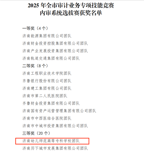 近日,2025年全市审计系统审计业务专项技能竞赛内审系统选拔赛圆满落幕,由审计处、财务处组建的参赛团队荣获三等奖。本次参赛范围涵盖市直各部门单位、市属高等院校及市属国企,在全市32支获奖队伍中,仅有2所高等院校获奖。