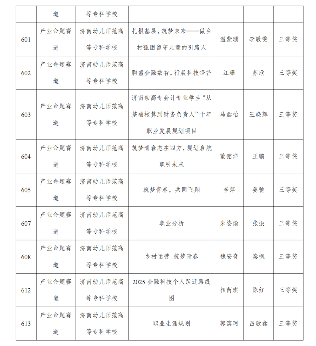 近日,第十七届山东省大学生科技节——山东省大学生创新方法大赛职业生涯规划竞赛圆满落幕。济南幼儿师范高等专科学校海科信创产业学院学子凭借扎实的专业素养与出色的创新能力,在本届赛事中一举斩获61个奖项,其中包括一等奖9项、二等奖17项、三等奖35项,刷新学校参赛历史最佳纪录,充分彰显了学校在职业生涯规划教育与创新型人才培养方面的丰硕成果。