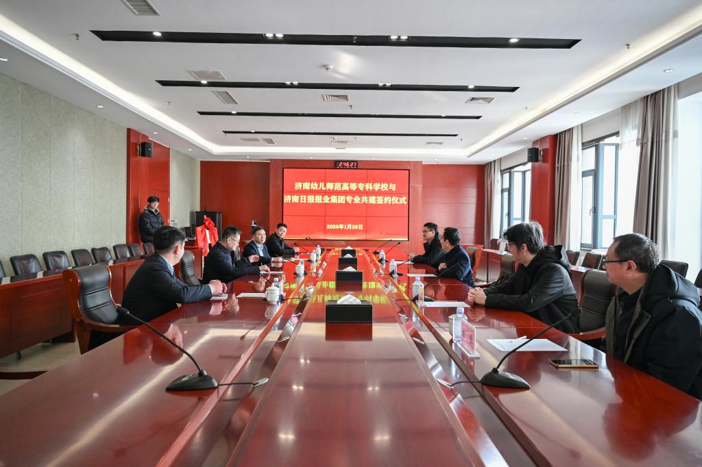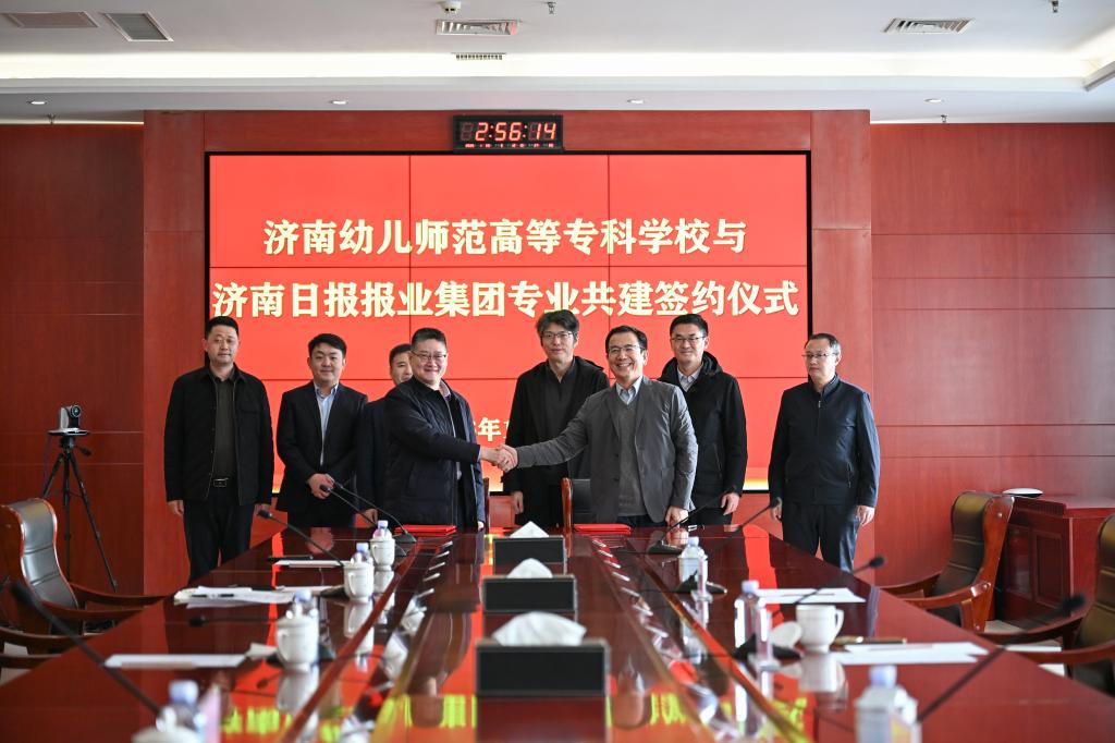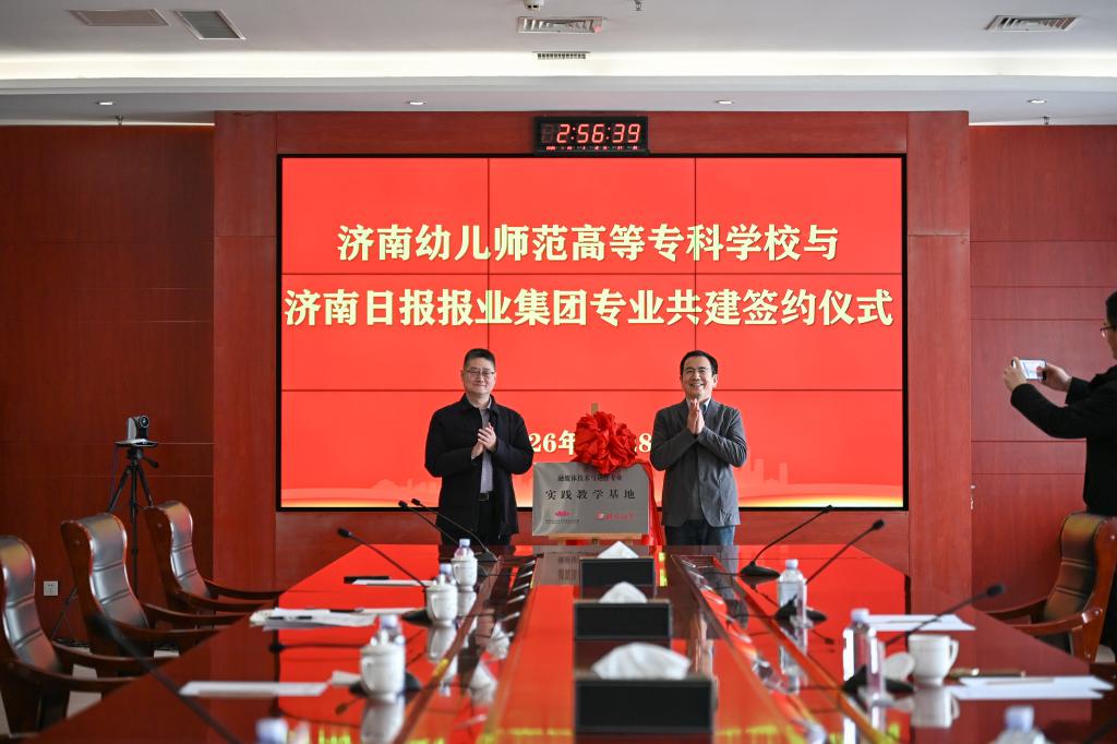 1月28日,我校与济南日报报业集团在济南报业大厦举行“融媒体技术与运营”专业共建签约仪式,双方共同为“融媒体技术与运营专业实践教学基地”揭牌,标志着校企深度合作、协同育人迈入新阶段。签约仪式由济南日报报业集团发展规划部主任孔祥震主持。