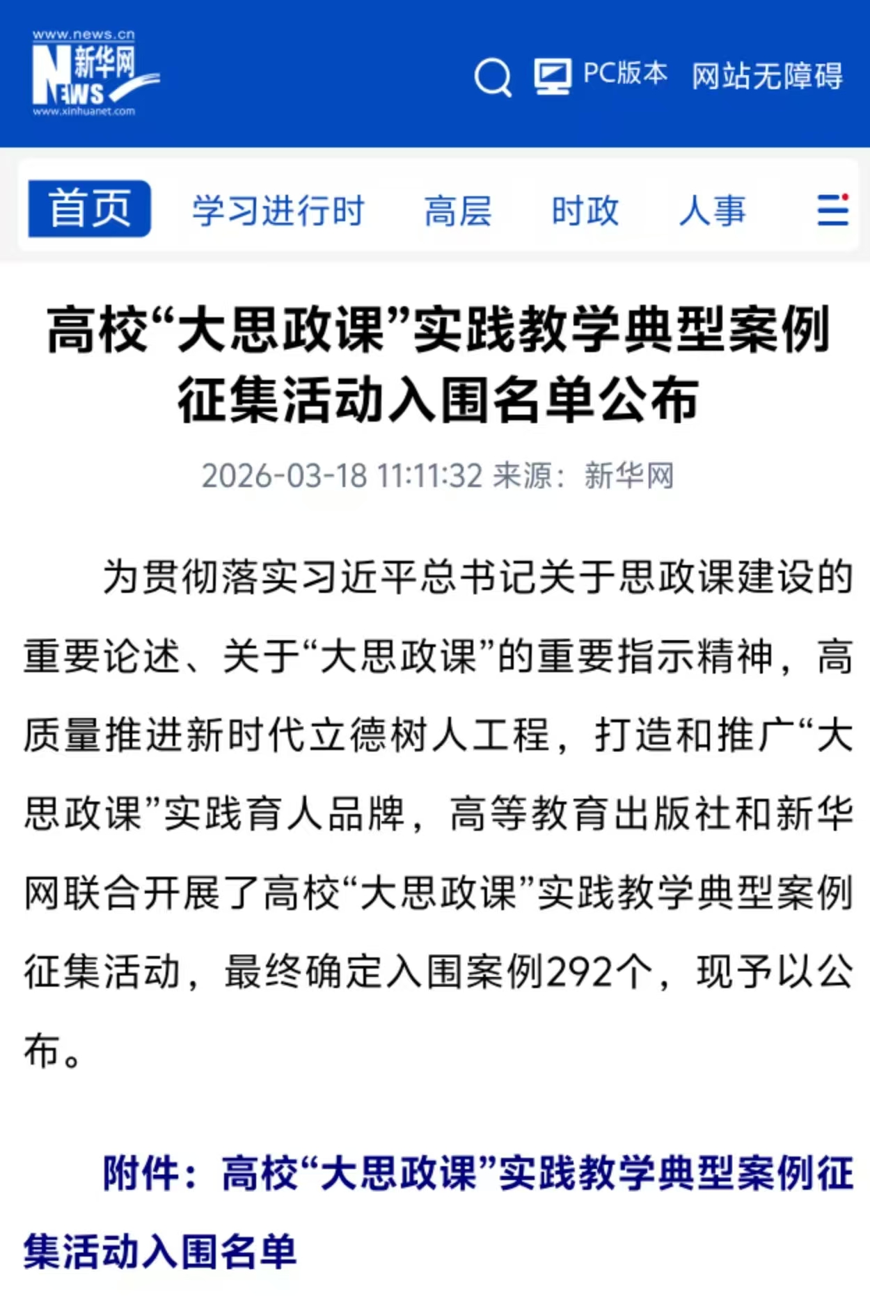 近日,由高等教育出版社与新华网联合开展的高校“大思政课”实践教学典型案例征集活动入围名单正式公布,我校报送的《德能融合·践悟互促——师德培育的实践教学探索》《赓续百年师范传统,书写红色幼师“三维实践”育人新篇章》成功入围。这是我校在“大思政课”建设领域取得的重大突破,为学校进一步深化“大思政课”改革、拓宽思政育人路径、提升育人实效注入了强大动力。