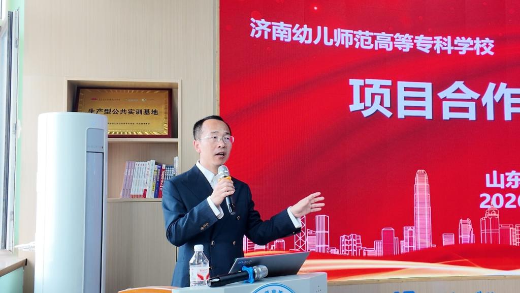 杨永董事长在致辞中介绍了企业发展布局与人才需求。他指出,宠物经济与直播电商融合发展前景广阔,期待与济南幼高专信创产业学院深度协同,在人才培养、实训基地建设、项目实践等方面开展全方位合作,共同打造产教融合标杆项目,为区域数字经济与新兴产业发展注入动能。