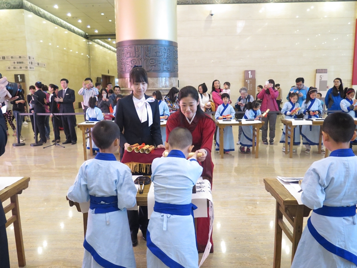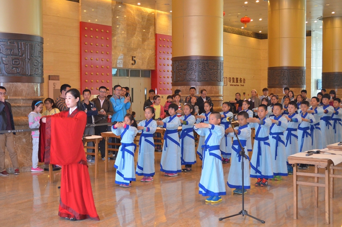 4月17日,山东博物馆孔子学堂举办第一期“少年吟诵月”展演。我校初等教育学院于琮老师和虚静国学研究会的部分同学参加了本场演出。