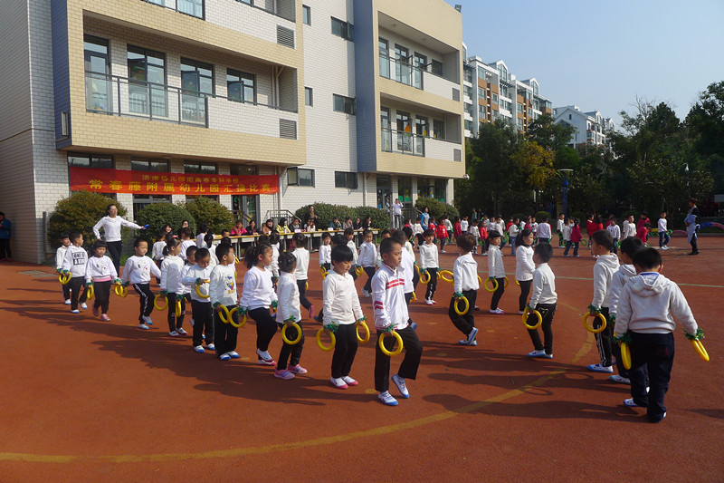 整个过程包括基本早操、徒手操、器械操、放松活动四个部分。以年级组为评比单位,由园领导及各班班长担任评委。上午10点10分伴随着熟悉的音乐,在老师的带领下,孩子们迈着整齐的步伐进入比赛场地。小班的孩子虽然刚来园时间不长,但聪明可爱的他们依然把动作做得有模有样。中、大班的孩子当然要做好弟弟妹妹的榜样,瞧,那响亮的口号,整齐的动作,精神饱满的面貌,让人不禁为他们点赞。